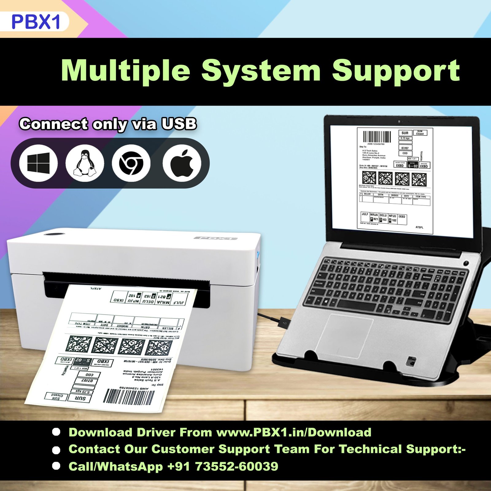 - 【Compatible With All Platforms】 PBX1 Label Printer Can Print All Small & Major Shipping and E-Commerce Platforms Labels Like Amazon, Flipkart, Meesho, Myntra, Nykaa, Snapdeal, IndiaMART, JioMart, Shiprocket, Nimbuspost, Delhivery, Bluedart, DTDC Etc